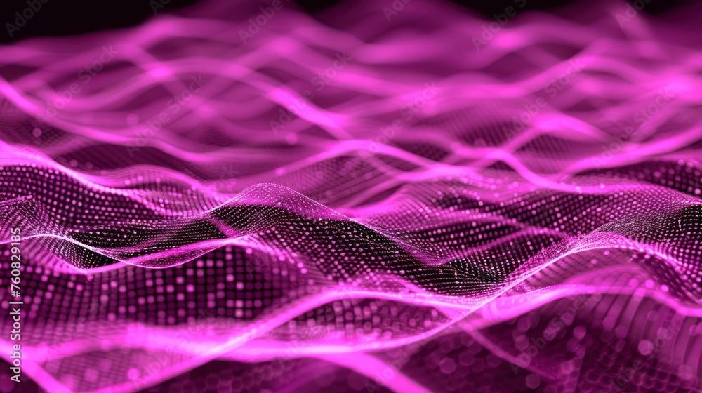 a computer generated image of a wave of pink and purple colors on a black background, with a black background. #760829135