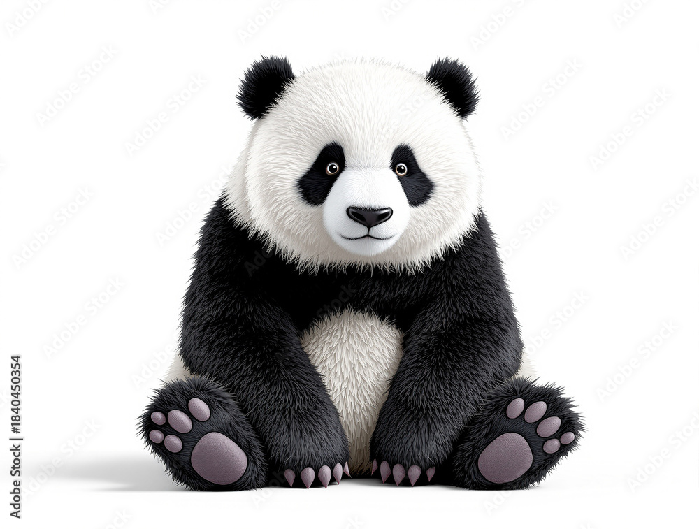 A cute and cuddly giant panda bear sitting peacefully and looking directly at the viewer with a soft expression, ready for interaction #1840450354