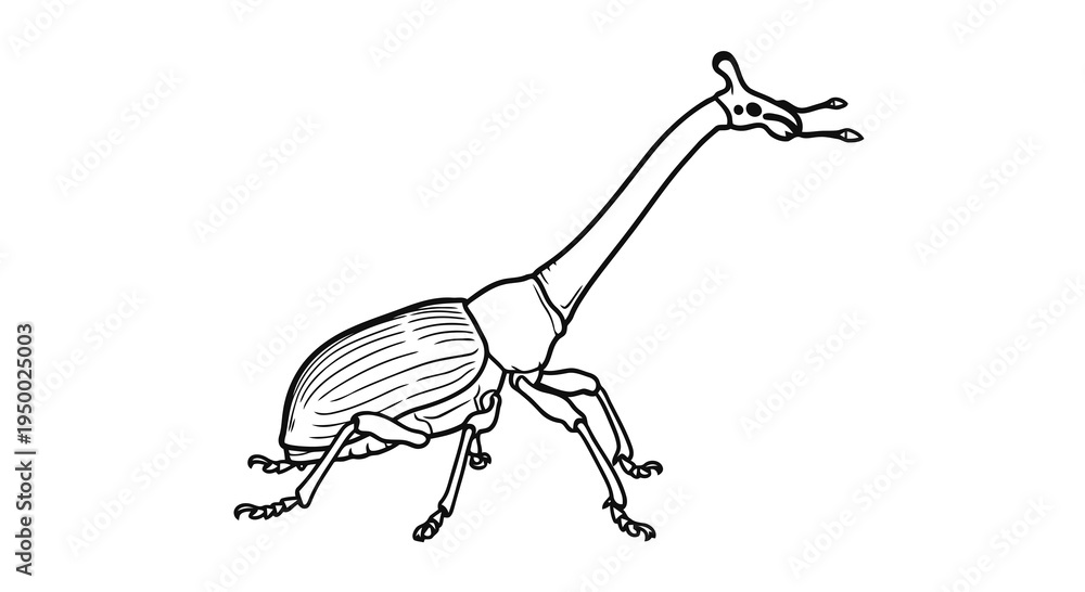 A detailed illustration of a weevil with a long neck and distinctive antennae. #1950025003