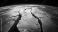 A dystopian vision of Earth cracking apart, with massive fissures splitting the land as heat waves distort the horizon, symbolizing the devastating impact of global warming #1251706700