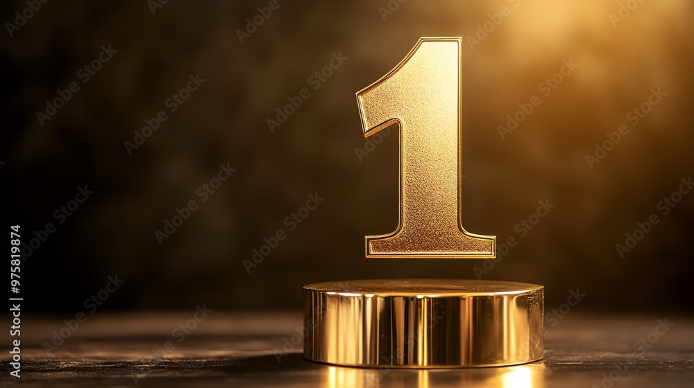 A gold-colored number one sits on a double-tiered platform. #975819874