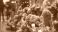 A memorial scene with teddy bears and flowers. Candles are lit among the tributes. The background shows blurred figures of people walking. #1865783645