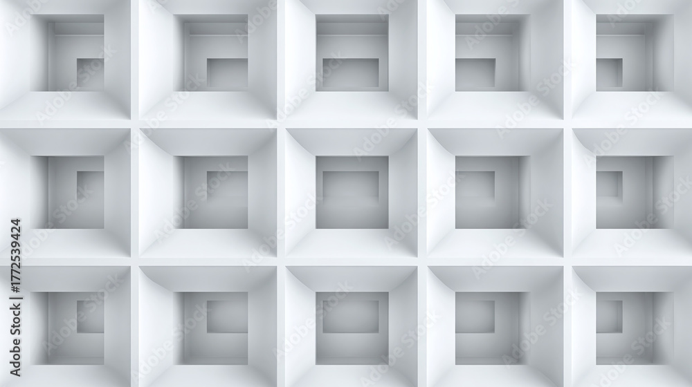 A minimalist pattern of nested square structures, creating a sense of depth and geometric intrigue. The repetition of the design forms an abstract yet structured composition #1772539424