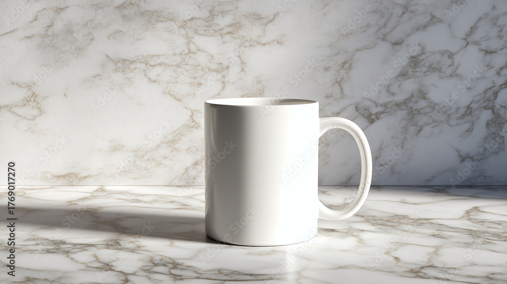 A pristine white mug on a marble surface, perfect for your morning beverage #1769017270