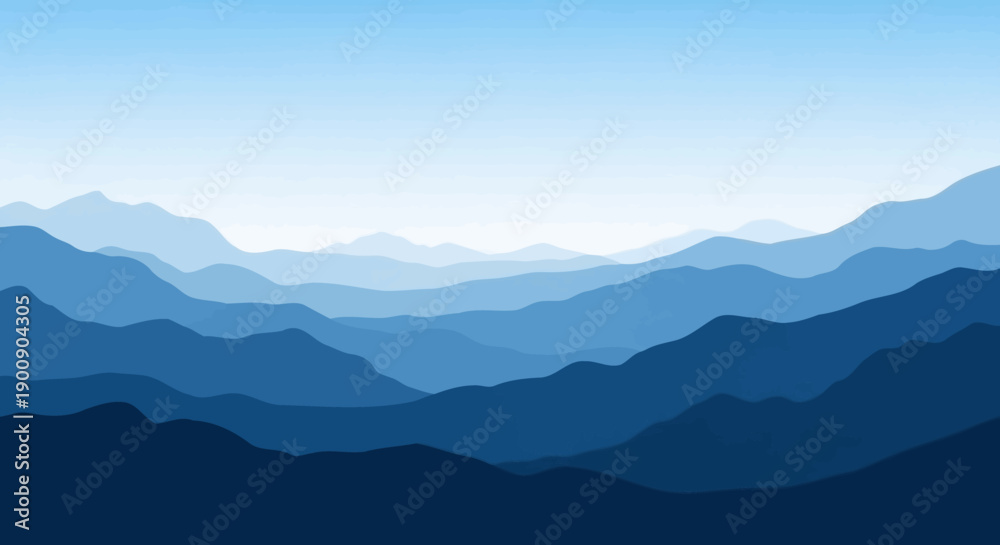 A serene landscape of layered blue mountains fading into a clear sky. #1900904305
