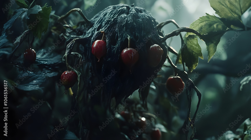 A sinister-looking plant with dark foliage and toxic berries. #1061536517