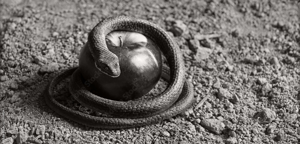 A snake wrapped around an apple as a symbol of temptation #573539826