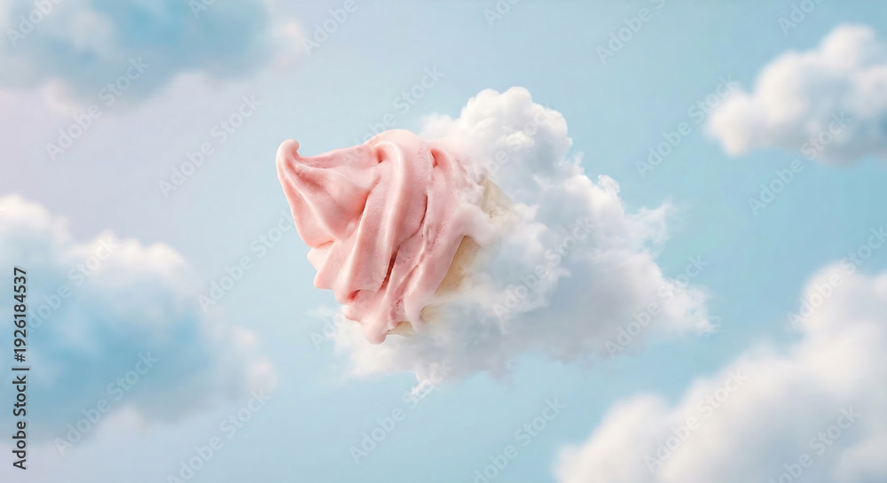 A soft, white heart shaped cloud floats gracefully in the blue summer sky, creating a fluffy and natural abstract texture within the light, airy atmosphere of a bright heaven #1926184537