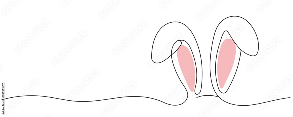 A solid line drawing of an Easter bunny. A greeting banner design featuring a bunny and ears in a simple line style. Editable line art. Vector illustration. #1935353470