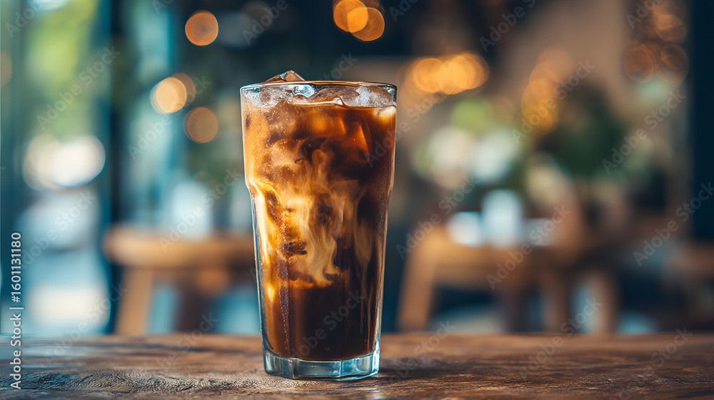A tall glass of dark Vietnamese iced coffee #1601131180