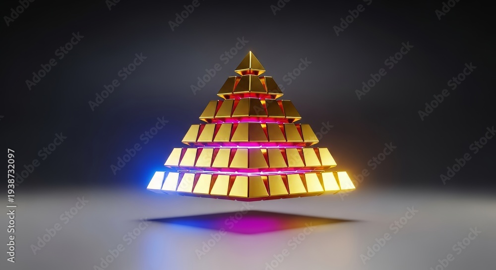 A vibrant aura of luminous energy envelops a gleaming stack of gold blocks, forming a powerful symbolic financial pyramid, vibrant, futuristic, blocks #1938732097