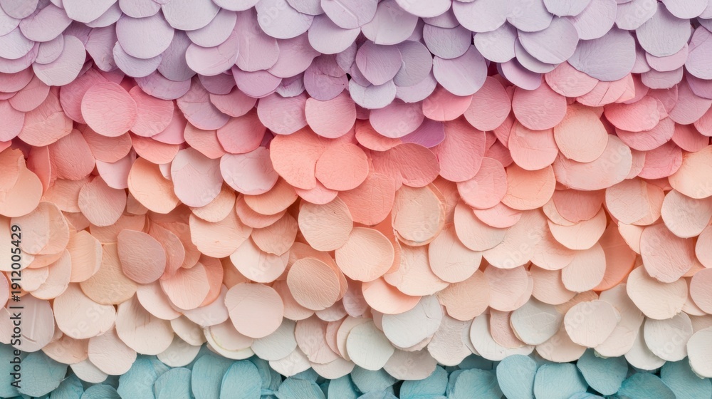 A vibrant display of overlapping circles in various pastel shades of pink, peach, and light blue. #1912005429