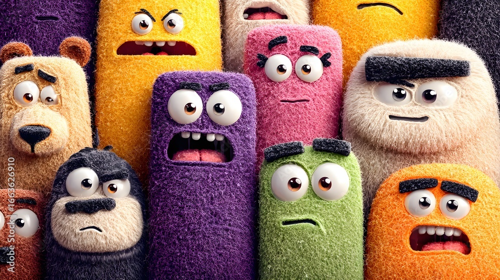 A whimsical gathering of colorful and expressive monster characters with varied emotions #1663626910