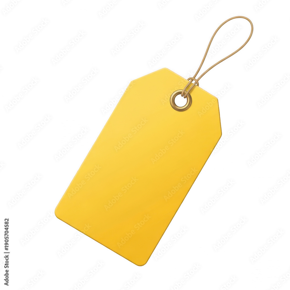 A yellow tag with a string attached to it, hanging freely on a white background. isolated on transparent background #1905704582