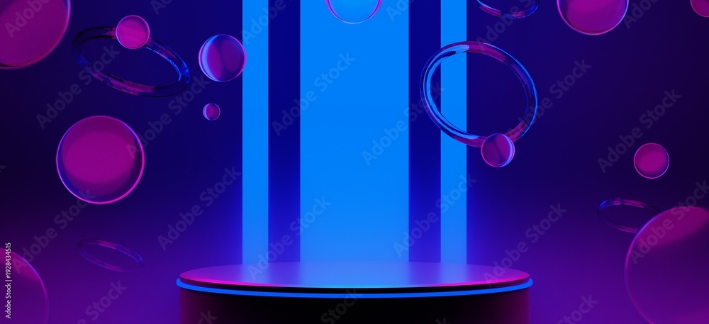 abstract backgound video game of scifi gaming cyberpunk, vr virtual reality simulation and metaverse, scene stand pedestal stage, 3d illustration rendering, futuristic neon glow room #1928434515