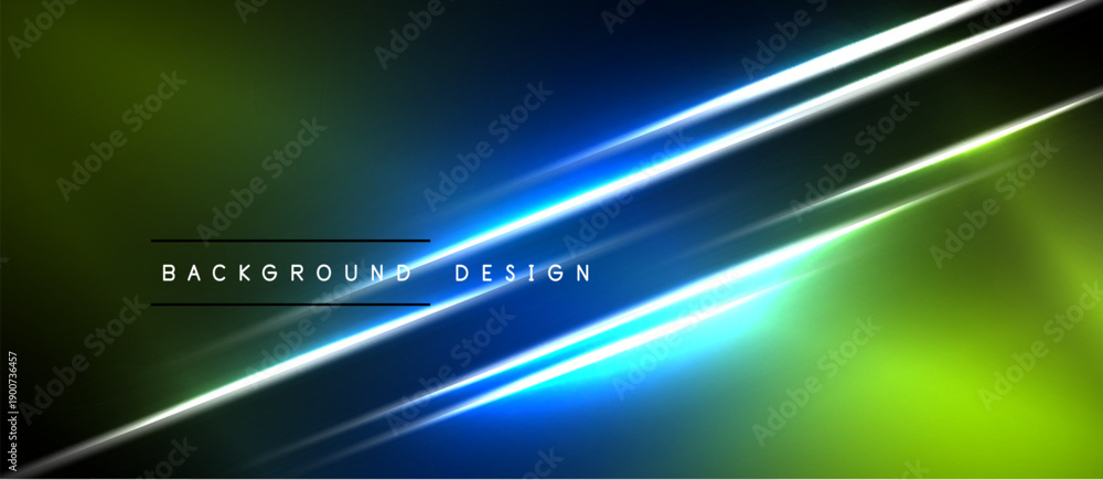 Abstract background features vibrant green, blue gradients. Bright lines create dynamic diagonal composition. Modern design element. #1900736457