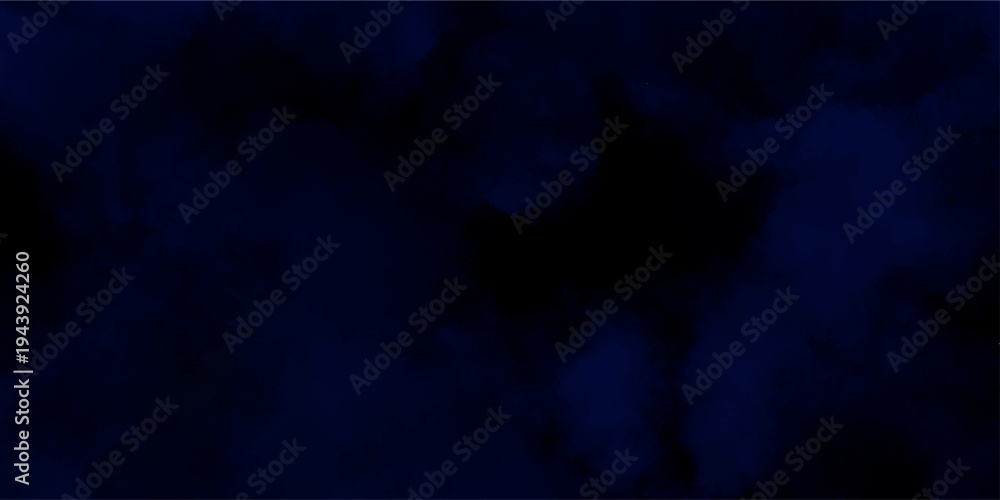 Abstract dark blue watercolor cloudiness, mist, or smog background. Dark navy blue sky with black background and blurred pattern. Vivid textured aquarelle painted art design background. #1943924260