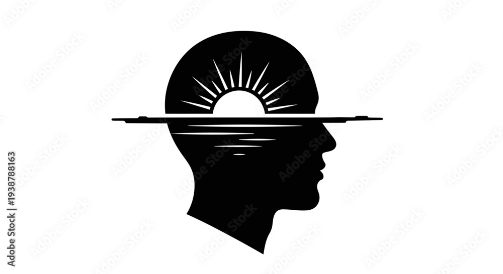 Abstract depiction of profound thought, merging inner human consciousness with natural serenity of #1938788163
