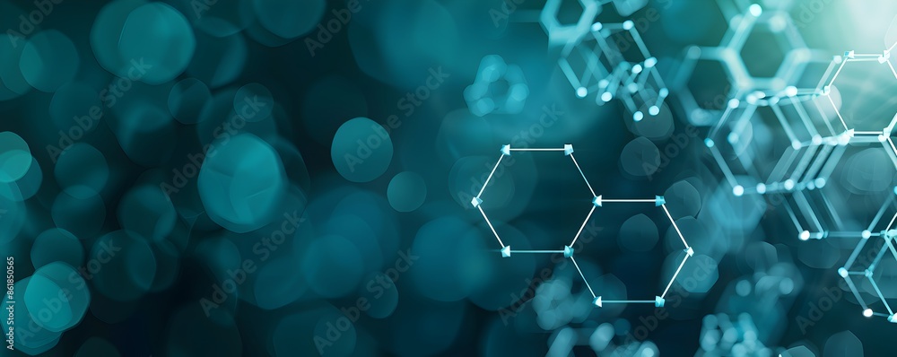 Abstract medical background with hexagons and icons of health care, science or technology concept on blue green gradient color banner vector presentation design #861850565