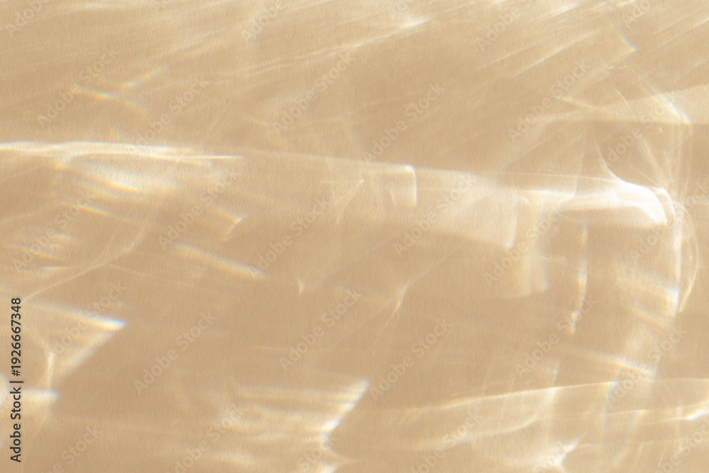 • #1964203999 Shiny golden abstract shadows background from sunlight and glare. Modern caustic background from reflection effects for product presentation and design card.
