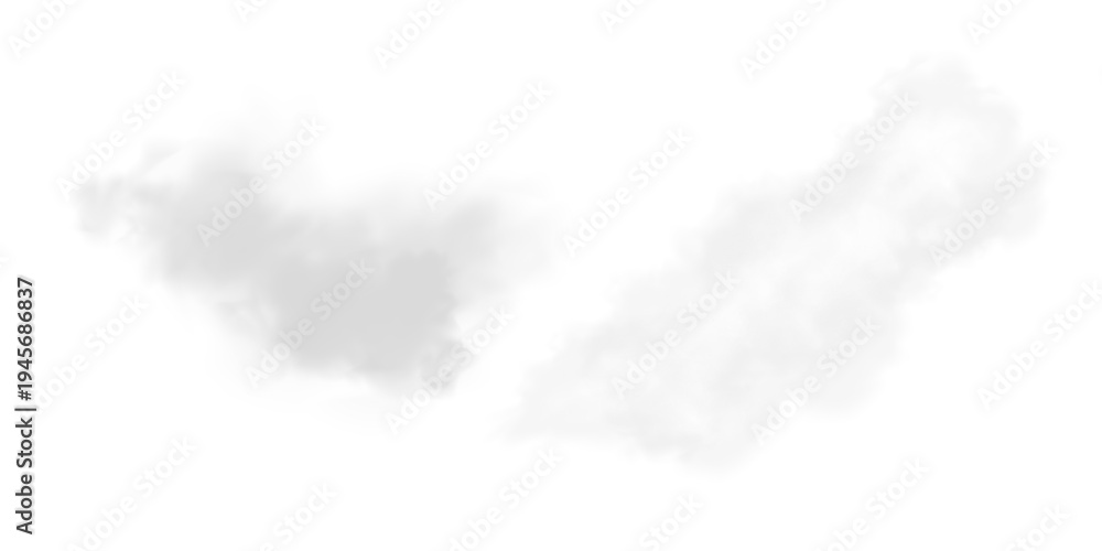 Abstract vector clouds, fog or smoke on an isolated transparent background. Dust cloud. Desert smoke. Sandstorm. 3D smog explosion. Cloud, smoke, png. #1945686837