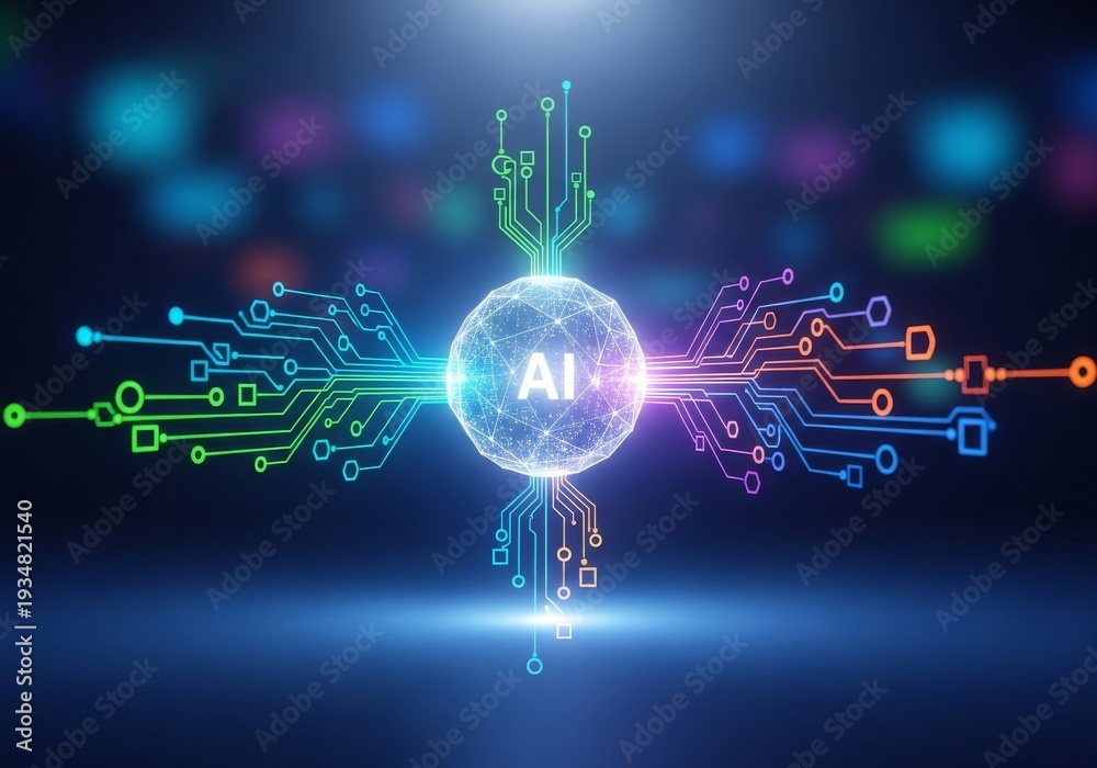 Abstract visualization of AI guiding strategic digital evolution, integrating data analytics and machine learning for business modernization, abstract, business, consulting #1934821540