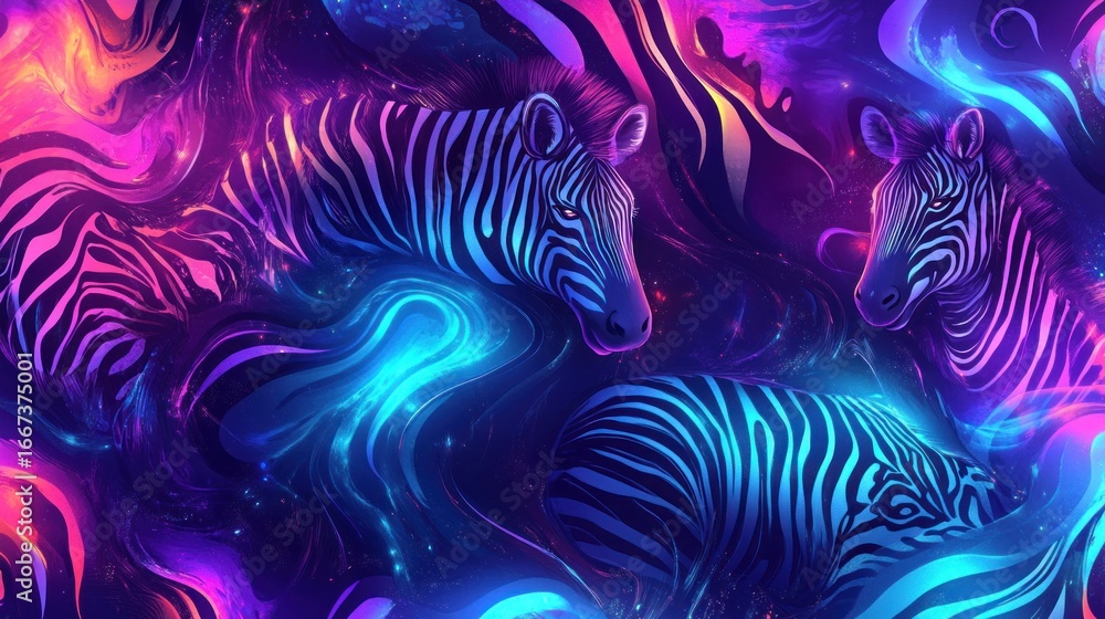 Abstract zebra design with vibrant neon colors and flowing patterns #1667375001