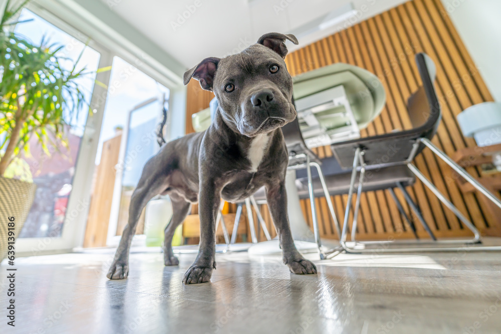 Adorable Close-up of Blue Staffy DogEnglish Staffordshire Bull Terrier #639139186