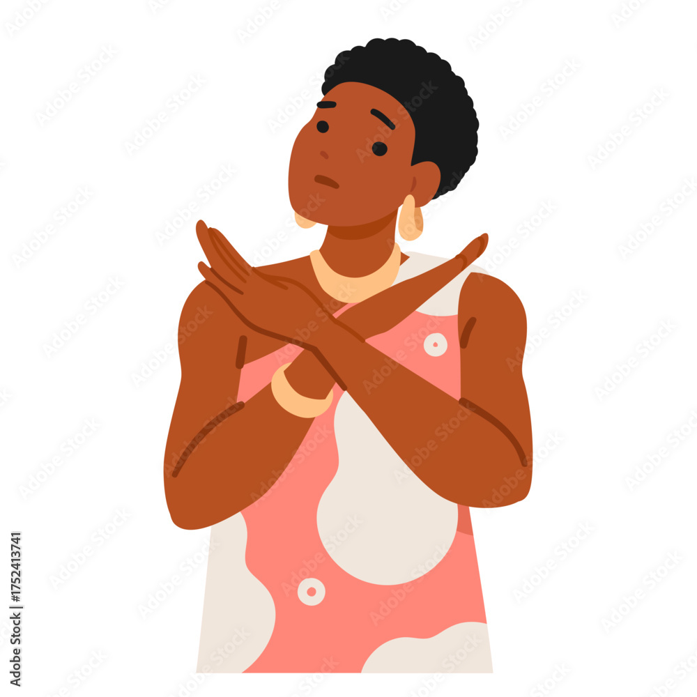 African American woman cartoon character disagreeing gesturing denial and refusal isolated on white #1752413741