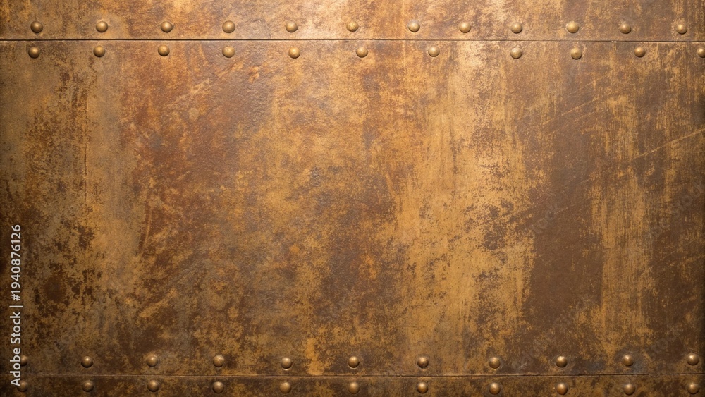 Aged metal panel with rivets and signs of rustic weathering #1940876126