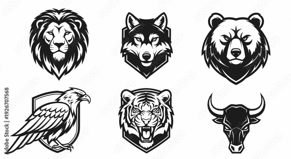 Aggressive Animal Mascots Logos for Sports, Esports, and Wildlife Branding - Vector Set #1926707568