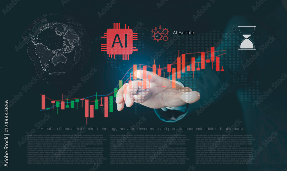 AI bubble concept representing global financial risk and market speculation from rapid growth of artificial intelligence technology, innovation investment,potential economic crisis or bubble burst. #1749443856