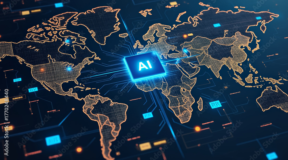 AI chip export concept ,AI chip map global network digital circuit data flow world map neon glow technology surge innovation #1770248440