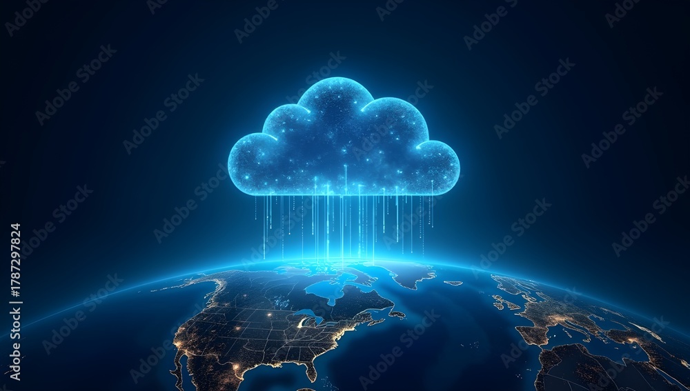 AI Generated Futuristic Cloud Computing Network Over Earth – Global Data Connection and Technology Concept #1787297824