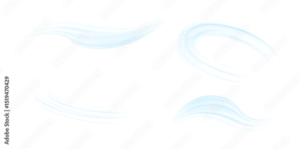 Air flow set of vector elements on a white background. Abstract light effect blowing from an air conditioner, purifier or humidifier. Dynamic blurred flow motion #1519470429