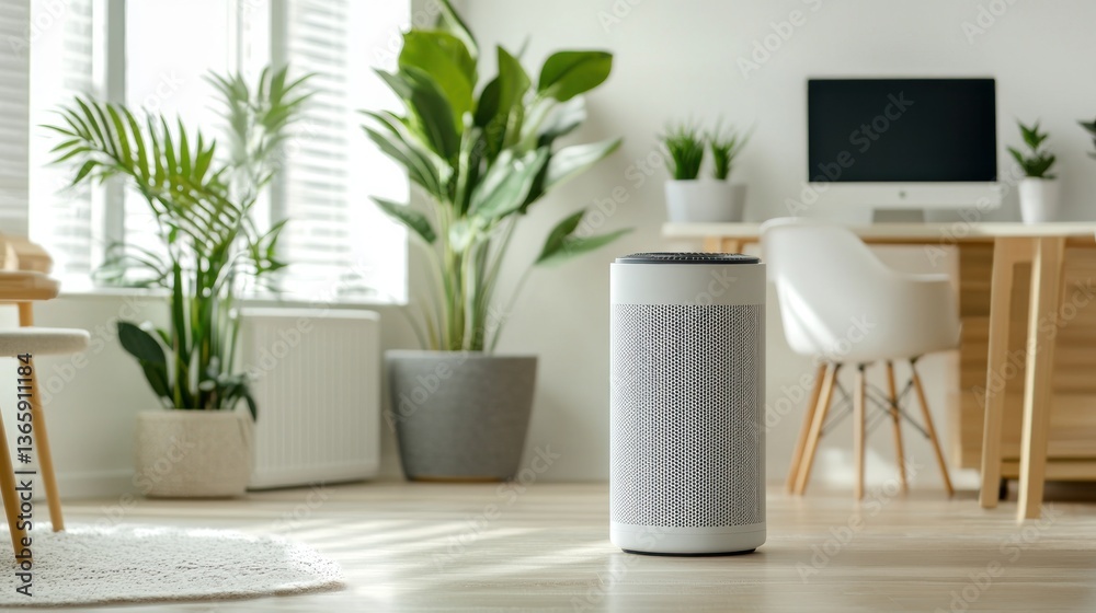 Air purifier with hepa filter modern home office product showcase bright environment close-up perspective #1365911184