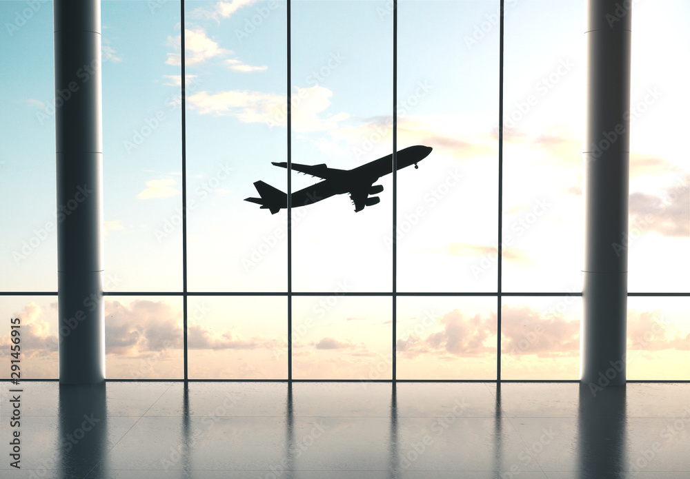 airport interior with windows #291456915