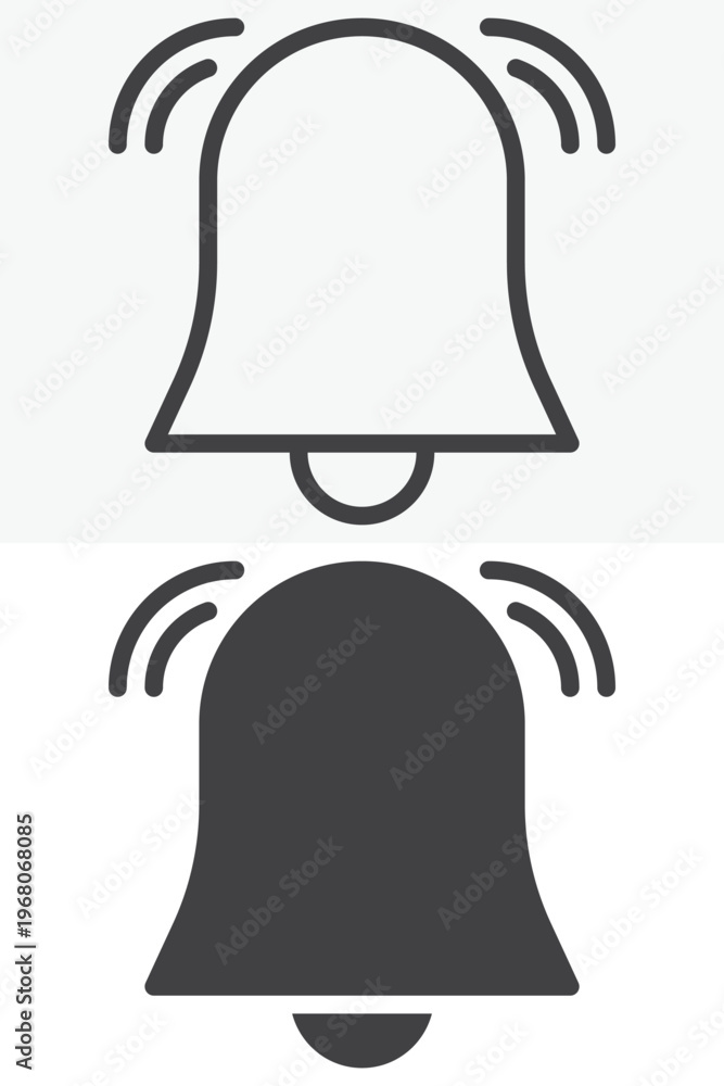 Alarm Bell icon in line, outline and solid style. Editable stroke vector sign and symbol set for time use, with alarm bell icon in simple versions. #1968068085