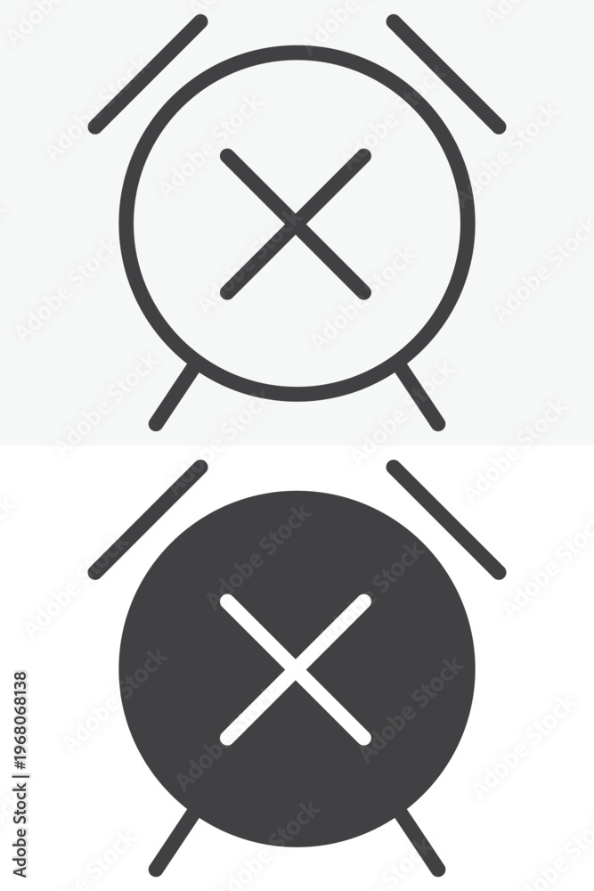 Alarm clock cancel icon in line, outline and solid style. Editable stroke vector sign and symbol set. Alarm clock cancel icon marks removed timer action. #1968068138