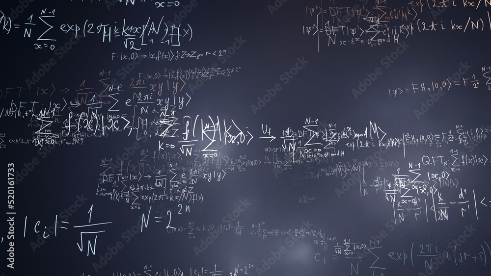 Algorithm, solutions of equations, abstract background of mathematical formulas. Engineering and mathematical education, algorithm development #520161733