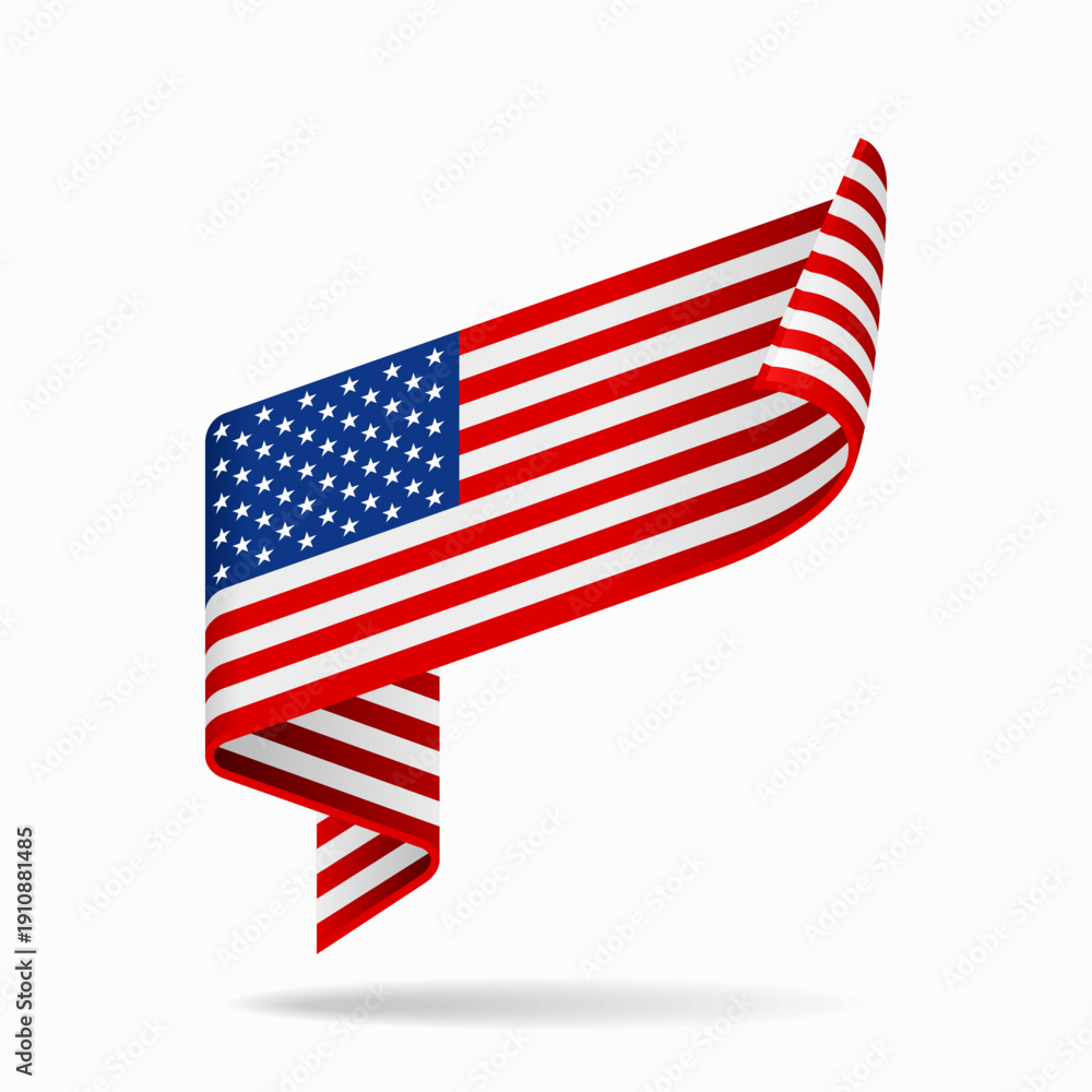 American flag ribbon icon for patriotic, cultural, or national-themed designs. Vector illustration. #1910881485