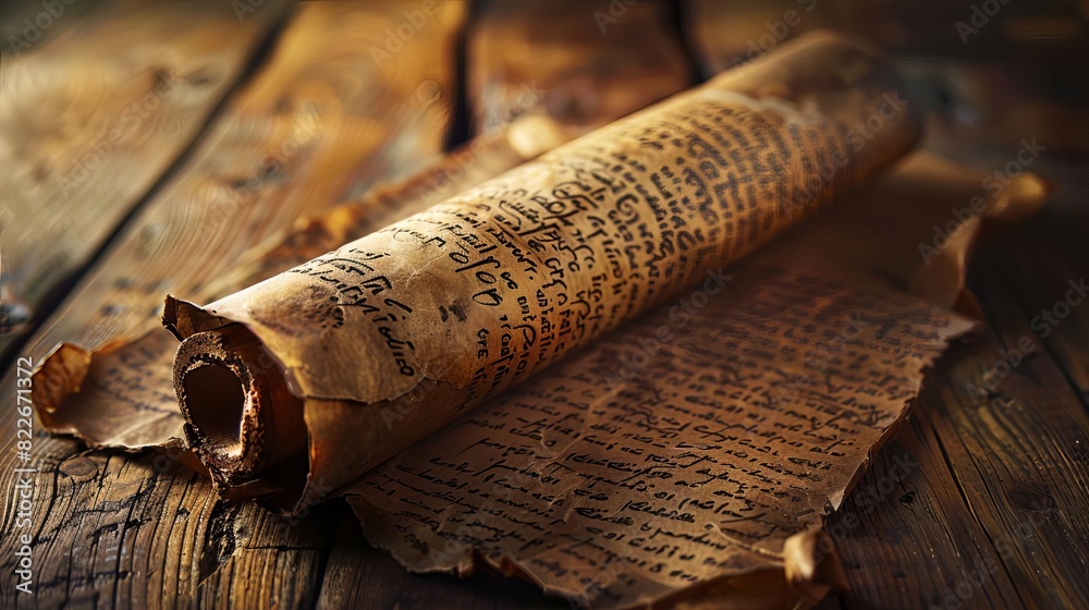 An ancient scroll with a prophecy written in a forgotten language, #822671372