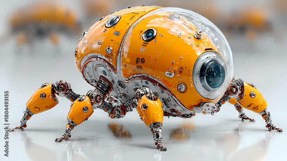 An Image Of A Close Up Of A Small Orange Robot Spider #1804493155