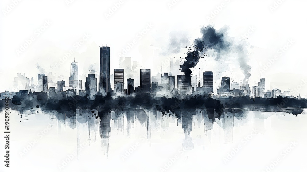 An isolated portrayal of a cityscape on a white background. #1907910442