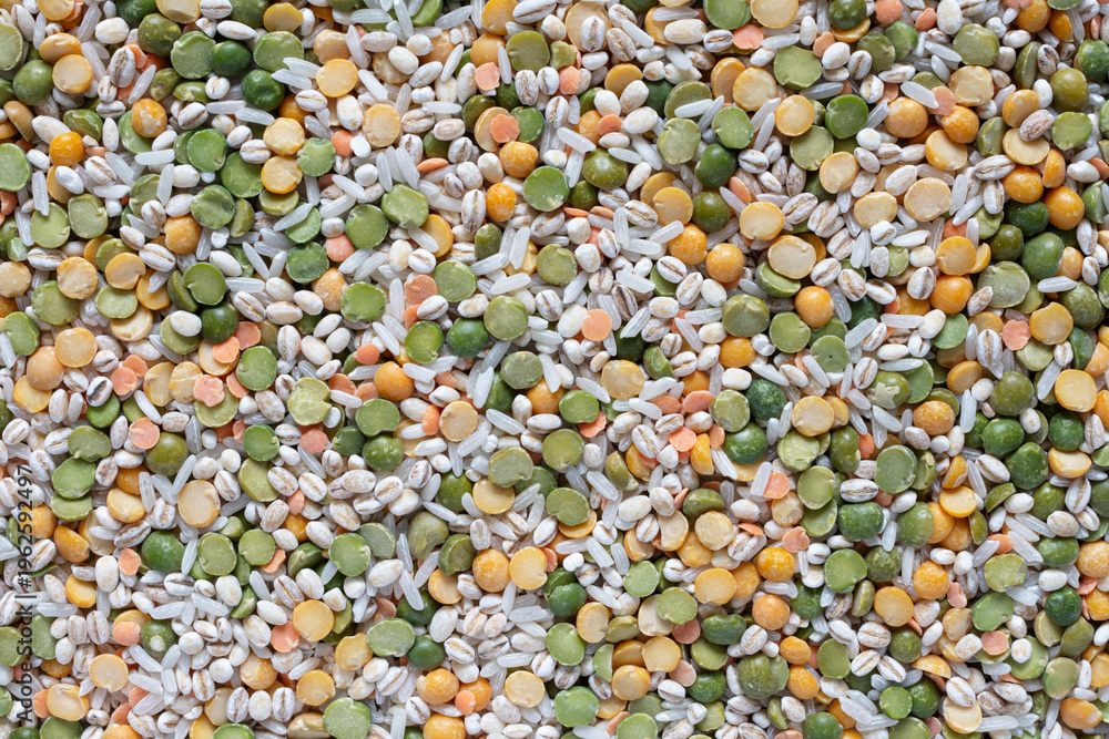 An top view abstracted image of a variety of dried vegetables used to make homemade vegetable soup from scratch. #1962592497