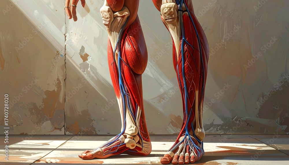 Anatomical illustration of human leg muscles and skeletal structure #1740728020