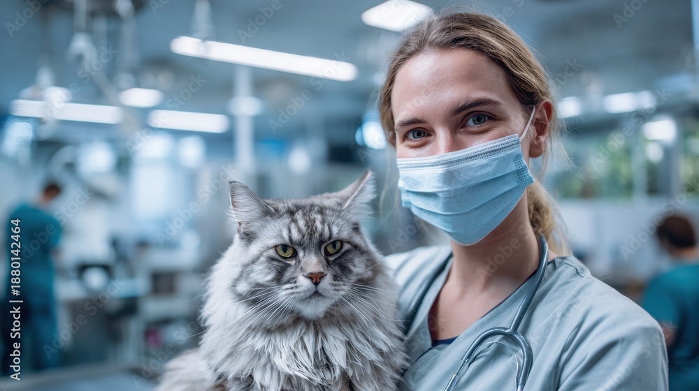 Animal doctor with feline at clinic #1880142464