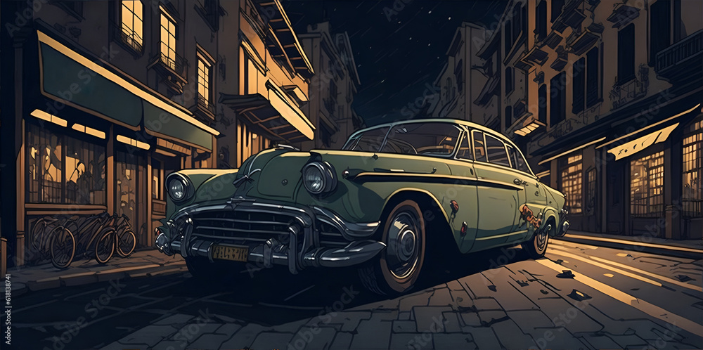 Anime style car drifting in the night sea. AI generated illustration #618138741