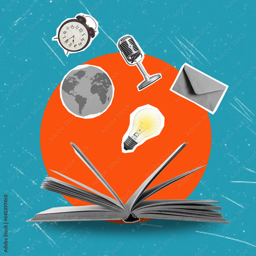 Artistic Contemporary Collage is an open book, with knowledge flowing from the pages. #645397468