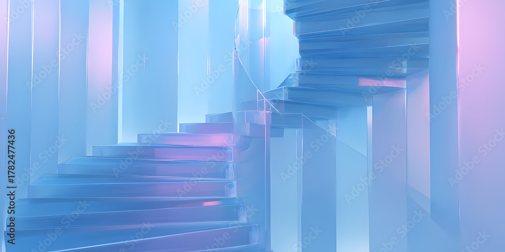 Ascend to new heights with this stunning, futuristic spiral staircase design bathed in ethereal blue and pink light, symbolizing innovation and progress. #1782477436